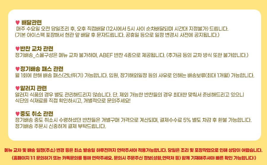 [너를위한] 매주 새로운 구성으로, 아기반찬 유아반찬 유아식 정기배송 4주 스몰구성(ABEF 반찬4종 * 4회)